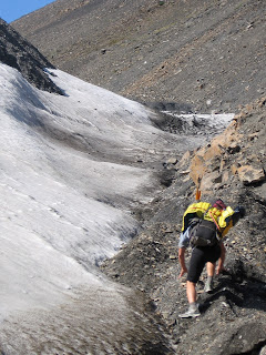 | Feeing more awake now outside naked! The mountainside over my shoulder with the liqueur is where Birgit just skied. |